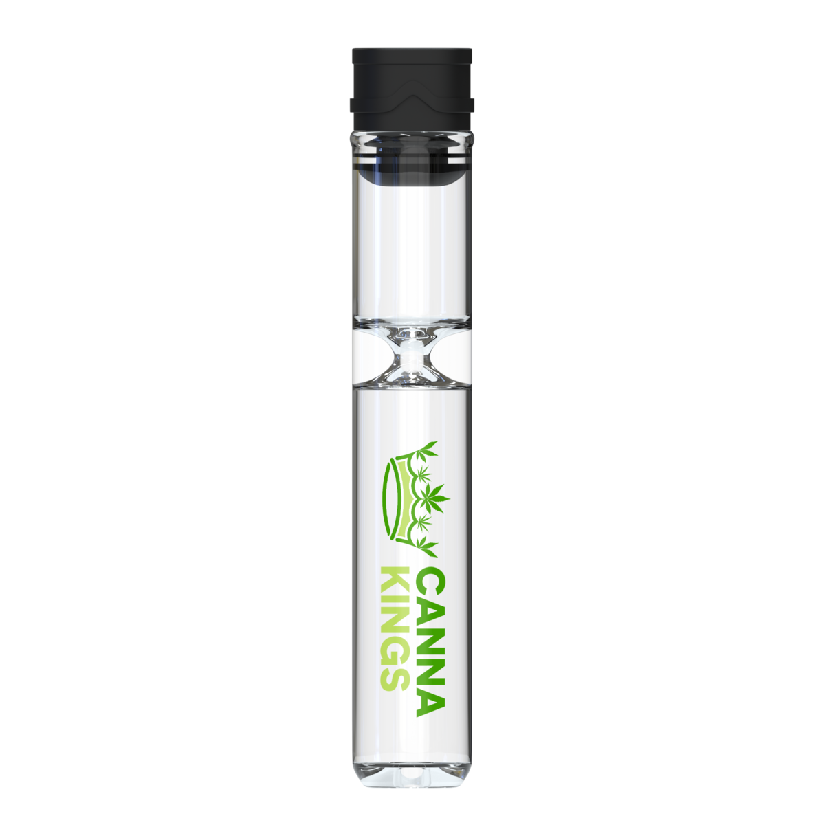 Showcase your brand with these premium custom pre-pack glass chillums. Expertly crafted right here in the USA using pharmaceutical-grade glass, these chillums not only provide a smooth experience but they can also be used as reusable packaging to sell your flower.