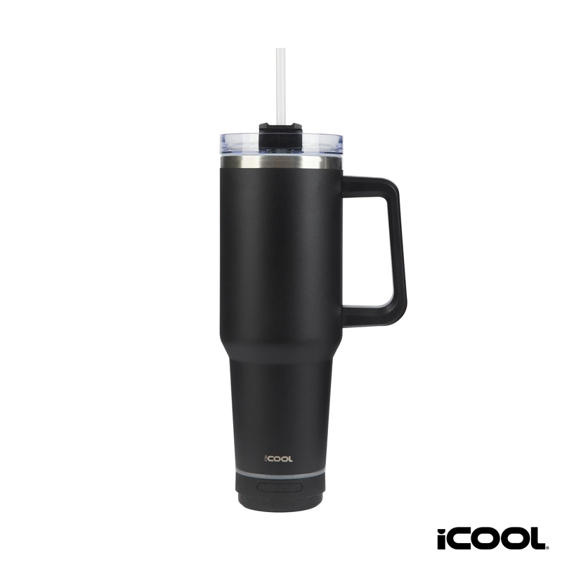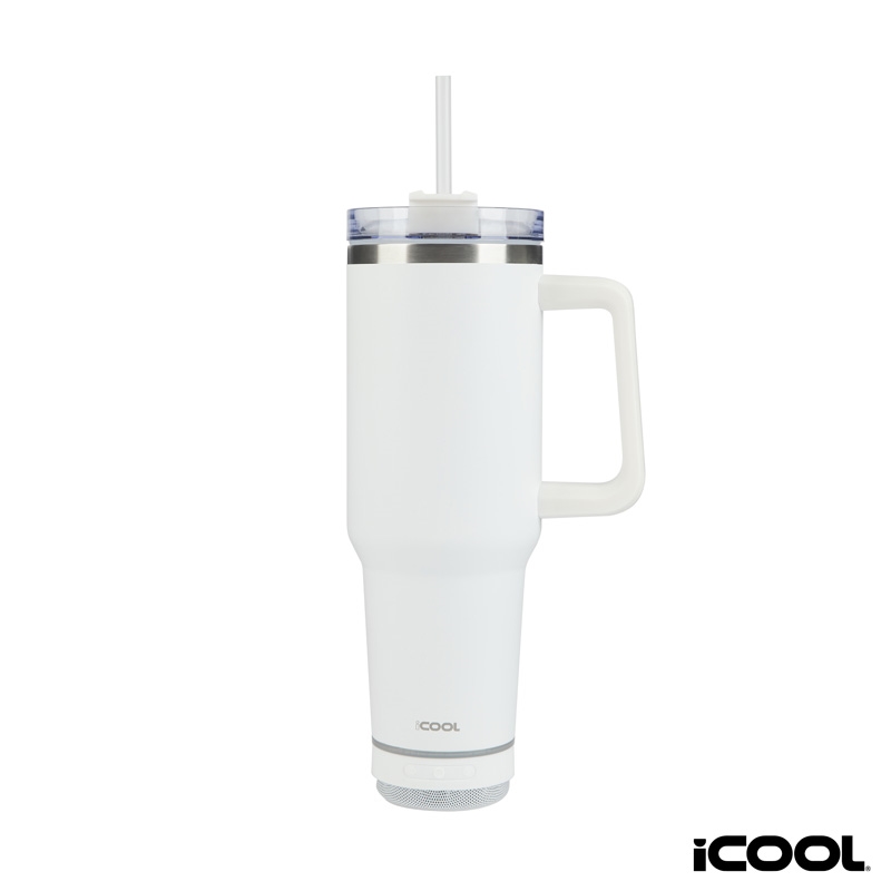 The iCOOL® Borrego 40 oz. Travel Mug is the perfect solution for keeping you hydrated while adding a touch of entertainment to your journey. The mug is made of premium 18/8 stainless steel and the double wall vacuum insulated construction keeps your drink cold for 30 hours and hot for 18 hours. The spill-resistant screw-on lid with a rotator closure ensures that your drinks stay contained, and the reusable straw provides comfortable sips for your cold drinks. The iCOOL® Borrego features a removable 3W light-up wireless speaker which connects to your device wirelessly for you to enjoy your favorite tunes wherever you go. BPA Free and FDA Compliant, it includes a Micro to USB-A charging cable to recharge the speaker's 500mAh lithium battery and comes in a white gift box. Playback time: 3-4 hours per charge; Output: 3W. A portion of all proceeds is donated to Shelter to Soldier™, a non-profit organization that rescues dogs to train as service animals for veterans in need.