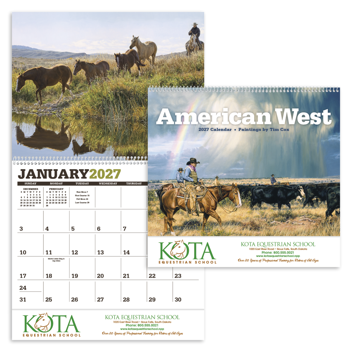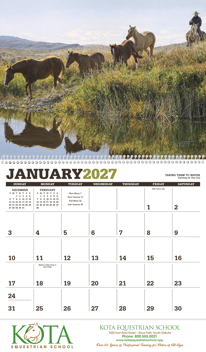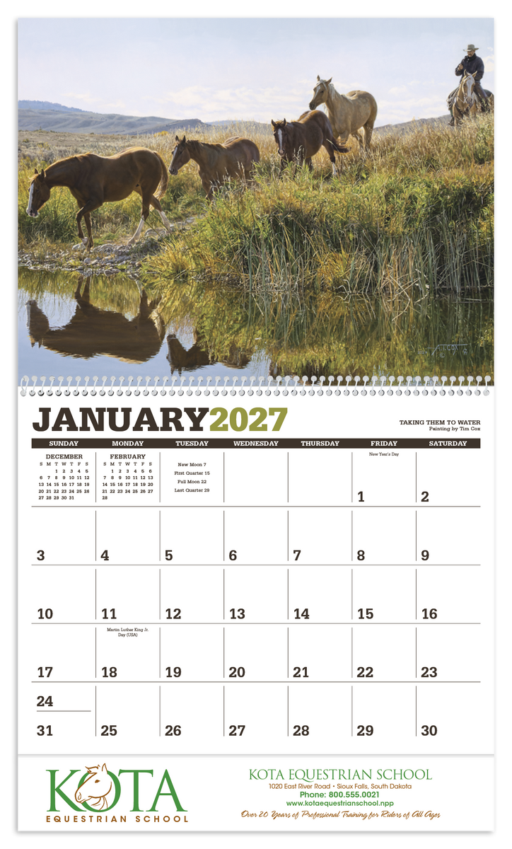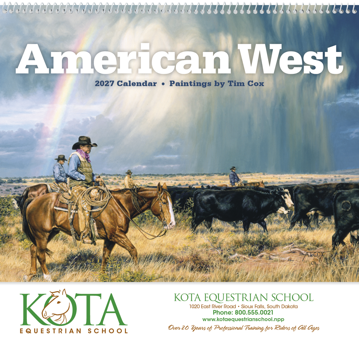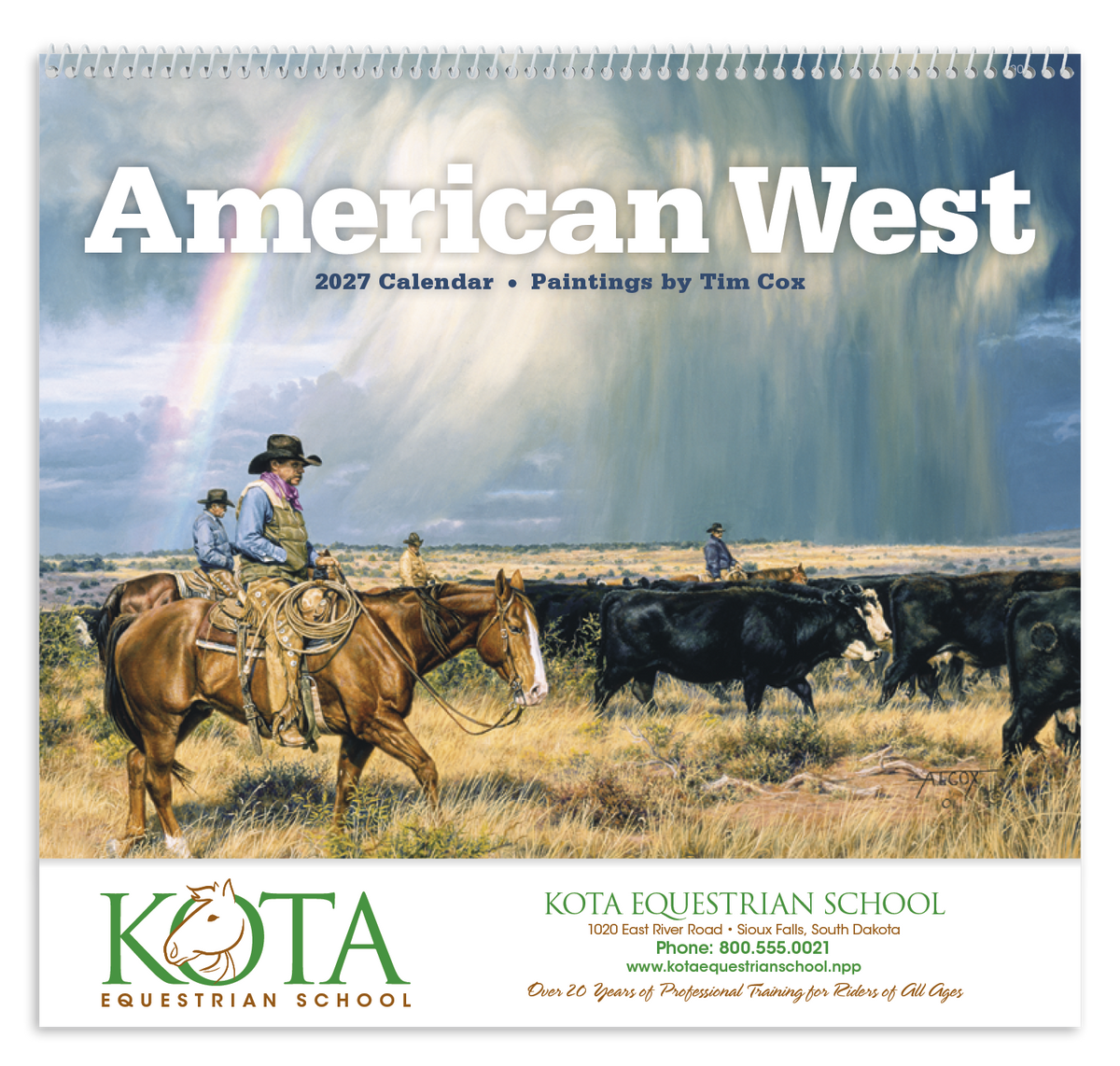 Renowned artist Tim Cox brings the American West to life in this calendar. His life-like depictions of the contemporary cowboy hang in museums across the United States and can now hang in your office or home. The FSC® label means that the materials used for this product come from well-managed FSC®-certified forests and other controlled sources.