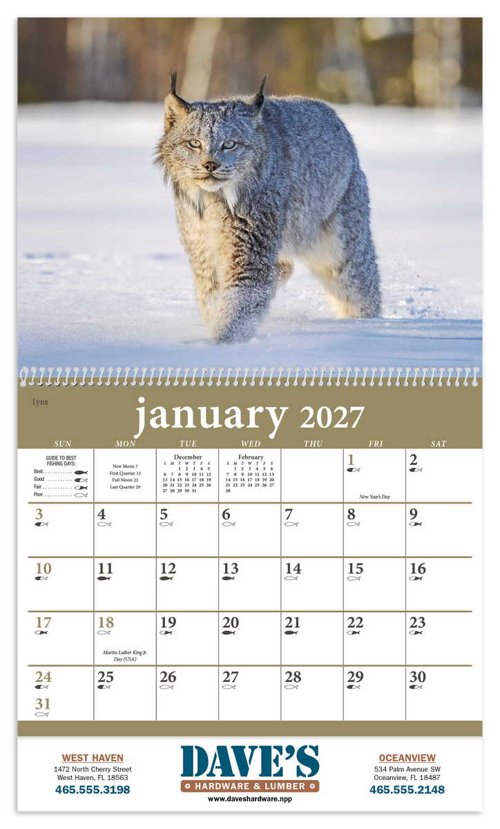 For those who appreciate the outdoors, this calendar contains the highly regarded Wright's guide to the best fishing days. Perfect for planning outdoor activities in advance. The FSC® label means that the materials used for this product come from well-managed FSC®-certified forests and other controlled sources.